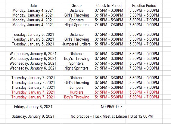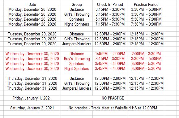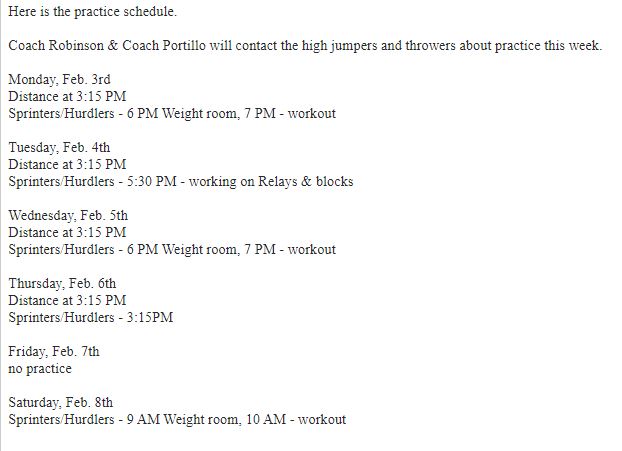 Hello Winter Track & Field Team. Happy December to everyone. Hope everyone had a great thanksgiving holiday.